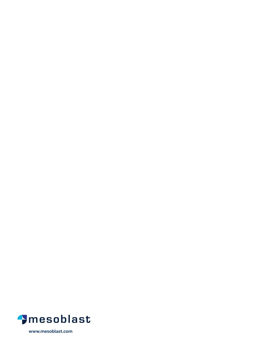 Patients with advanced CHF, implanted with an FDA-approved LVAD as bridge-to-transplant or destination therapy, were eligible to participate in the trial. All patients were followed until 12 months post randomization. Across the 159 patients in this Phase 2 trial, the trial did not show a significant difference in the ability for patients to tolerate a wean for a period of 60 minutes. In the, 70 patients with end-stage ischemic HFrEF the key findings were: • Ischemic controls were characterized by persistently elevated levels of the inflammatory cytokine IL-6, by reduced ability to be weaned from LVAD support, and by high mortality. • In contrast, in ischemic patients treated with rexlemestrocel-L, IL-6 levels returned to normal by 2 months and remained low through 12 months. • 63% of ischemic patients who received a single administration of rexlemestrocel-L successfully underwent temporary weaning from full LVAD support as early as month 2 as compared with 36% of controls (p = 0.008). • The cumulative incidence of successful temporary weans off the LVAD device over 6 months was also increased by 1.55-fold over control in ischemic patients who received rexlemestrocel-L ([95% CI 1.01, 2.36]; p=0.02). • Only 4.9% of ischemic patients treated with a single administration of rexlemestrocel-L died from month 2 through month 12, as compared with 26.9% of ischemic controls, an 82% reduction (p = 0.02). Current Status and Anticipated Milestones In March 2024, FDA provided this feedback in formal minutes to the company following the Type B meeting held with FDA in February, 2024 for rexlemestrocel-L (Revascor®) under the existing Regenerative Medicine Advanced Therapy (RMAT) designation. The FDA supported an accelerated approval pathway for rexlemestrocel-L in patients with end-stage ischemic HFrEF and a left ventricular assist device (LVAD). In feedback provided to Mesoblast regarding potential pathways to licensure for rexlemestrocel-L, FDA’s comments indicated that the presented results may support a reasonable likelihood of clinical benefit of MPCs against mortality in LVAD patients, consistent with the criteria for accelerated approval. In June 2025, Mesoblast held a Type B meeting with FDA under its RMAT designation for Revascor® to discuss components of a potential filing for a Biologics License Application (BLA). There was alignment with FDA on items regarding chemistry, manufacturing & controls (CMC), potency assays for commercial product release, and proposed design and primary endpoint for the confirmatory trial post-approval. Mesoblast intends to file by the end of the year for accelerated approval in patients with end-stage ischemic HFrEF implanted with an LVAD. Accelerated approval to market Revascor®, if received, will require Mesoblast to commit to a post-approval confirmatory study in NYHA Class II/III HFrEF patients which could result in full approval in the broader HFrEF population. In November 2024 a publication in the prestigious peer-reviewed European Journal of Heart Failure (EJHF) reported that a single intramyocardial injection of Revascor® results in improved survival in high-risk NYHA Class II/III patients with ischemic heart failure and inflammation. This identifies the HFrEF population that is responsive to Revascor® and will be the target of a confirmatory trial after accelerated approval, if received Rexlemestrocel-L has regenerative medicine advanced therapy (RMAT) designation from the FDA for treatment of chronic heart failure with left ventricular systolic dysfunction in patients with an LVAD. Program for Class II/III CHF patients A multicenter, double-blinded, 1:1 randomized, sham-procedure-controlled Phase 3 study of remestemcel-L was completed across North America with 565 NYHA Class II/III patients at high risk of repeated heart failure hospitalizations or a terminal cardiac event (cardiac death, LVAD placement, heart transplant or insertion of an artificial heart). The enrollment criteria for this trial included a prior decompensated heart failure event (e.g. hospitalization) within the previous nine months and/or very high level of NT-proBNP, a protein used in diagnosis and screening of CHF. These inclusion 62